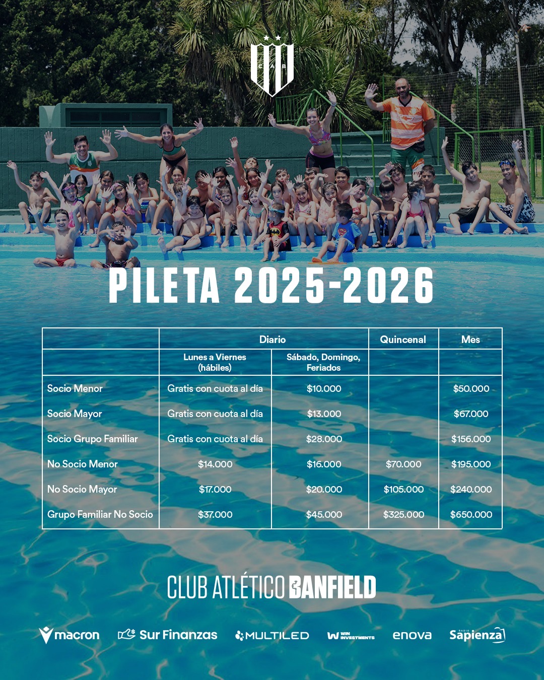 Últimas noticias Fútbol Profesional TapaPretemporada 2026 en marcha Ene 2, 2026 Leer Fútbol Profesional TapaTomás Adoryan renovó su vínculo Dic 26, 2025 Leer Fútbol Profesional TapaPrimer contrato para Valentín González Dic 16, 2025 Leer Fútbol Profesional TapaFixture confirmado para el 2026 Dic 13, 2025 Leer Fútbol Femenino TapaLa Reserva femenina, bicampeona de AFA Dic 9, 2025 Leer Fútbol Profesional TapaPedro Troglio renovó su vínculo con Banfield Dic 5, 2025 Leer TapaPartido de Socios/as 2025 Dic 4, 2025 Leer TapaTemporada de pileta en Luis Guillón Dic 3, 2025 Leer TapaColonia 2026 en el Campo de Deportes Dic 2, 2025 Leer Tapa¡Black Friday en el shop! Nov 28, 2025 Leer Colegio Banfield Tapa¡Se viene la gran Kermesse! Nov 27, 2025 Leer Institucional TapaConvocatoria a Asamblea General Ordinaria y Extraordinaria Nov 27, 2025 Leer DestacadasFútbol ProfesionalLautaro Gómez renovó su vínculo con Banfield Nov 12, 2025 Leer DestacadasFútbol FemeninoLas categorías formativas femeninas, en lo más alto de Argentina Nov 5, 2025 Leer Destacadas Hockey VóleyReconocimiento en el Lencho Nov 5, 2025 Leer DestacadasInstitucionalLo que dejó la Conmebol Libertadores Femenina Oct 28, 2025 Leer DestacadasReservaGoleó la Reserva en Mendoza Oct 8, 2025 Leer DestacadasInstitucionalNuevos valores de la cuota social Oct 1, 2025 Leer DestacadasReservaEmpate de la Reserva frente a Racing Sep 30, 2025 Leer DestacadasFútbol juvenilJuveniles: Jornada positiva ante Unión Sep 29, 2025 Leer DestacadasFútbol ProfesionalSin diferencias ante Unión Sep 26, 2025 Leer DestacadasInstitucionalBanfield firmó un convenio con la Facultad de Derecho de la UNLZ Sep 23, 2025 Leer DestacadasReservaGanó la Reserva en Guillón Sep 17, 2025 Leer DestacadasInstitucionalHacete socio Sep 12, 2025 Leer DestacadasFútbol FemeninoFútbol Femenino: Triunfo en Rosario Sep 8, 2025 Leer DestacadasFútbol FemeninoInstitucionalBanfield será sede de la Copa Libertadores Femenina Sep 5, 2025 Leer DestacadasInstitucionalDe la inclusión a la convivencia Ago 31, 2025 Leer DestacadasInstitucionalConvenio con la Licenciatura en Gestión Deportiva de UADE Ago 27, 2025 Leer DestacadasFútbol FemeninoHomenaje a nuestras pioneras del fútbol femenino Ago 25, 2025 Leer DestacadasFútbol FemeninoFútbol Femenino: Victoria ante Racing Ago 25, 2025 Leer DestacadasFútbol ProfesionalTriunfo agónico en el Lencho Ago 17, 2025 Leer DestacadasInstitucionalBanfield fue anfitrión del Encuentro Deportivo y Cultural de Scholas Ocurrentes Jul 23, 2025 Leer DestacadasFútbol ProfesionalTiziano Perrotta selló su vínculo profesional con Banfield Jul 22, 2025 Leer DestacadasInstitucionalBanfield firmó un convenio con la UNLZ Jul 18, 2025 Leer DestacadasInstitucionalAbonos disponibles para el segundo semestre Jul 4, 2025 Leer DeportesDestacadasAlquiler de canchas en el Campo de Deportes Ene 28, 2025 Leer El club Últimas noticias Historia Presidentes Títulos Comisión Directiva Departamentos Áreas y subcomisiones Estatuto social