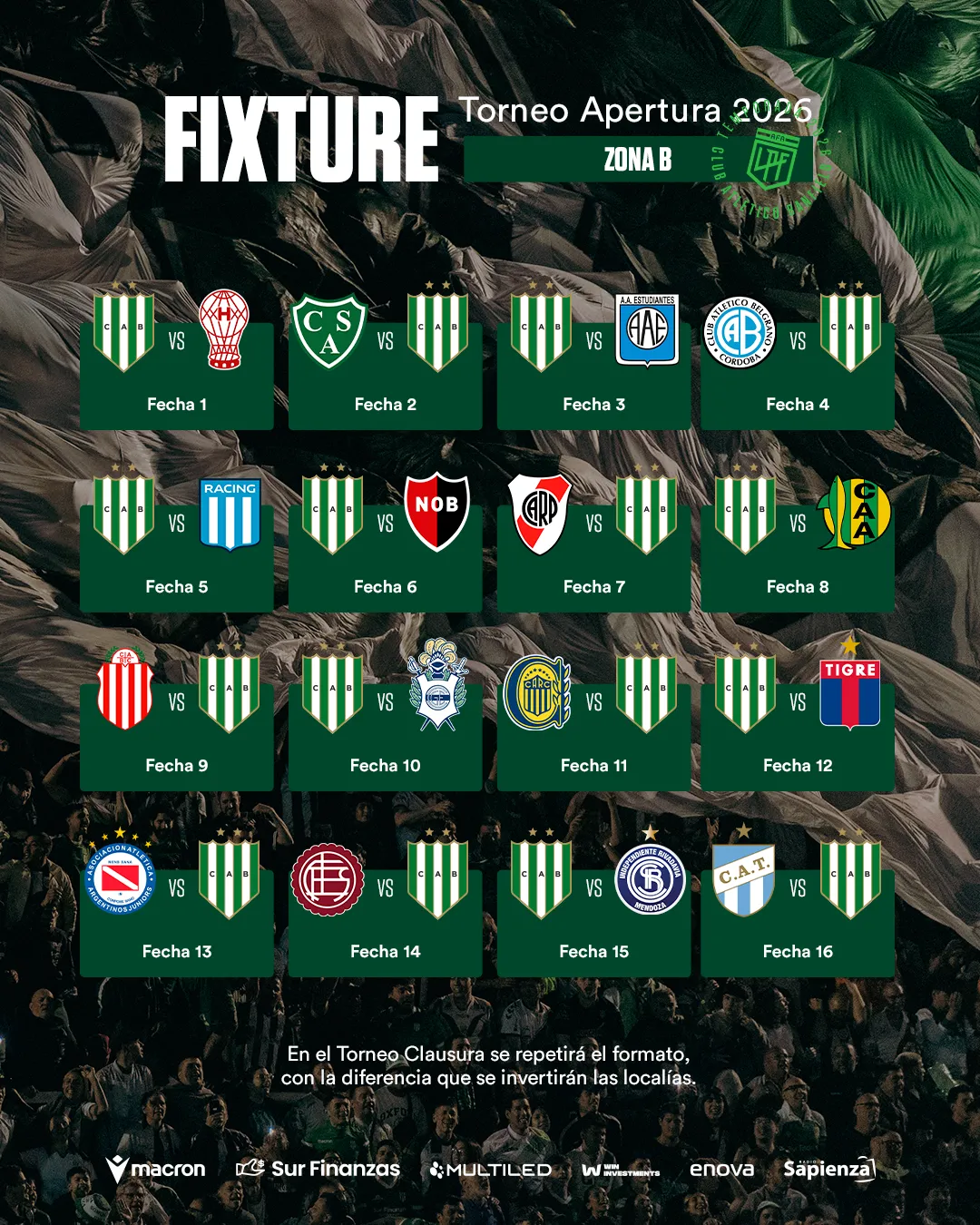 La Liga dio a conocer el fixture para el 2026. Se disputarán el Torneo Apertura y Torneo Clausura, con dos zonas de 15 equipos. Banfield integrará la zona B y debutará ante Huracán en el Estadio Florencio Sola.
