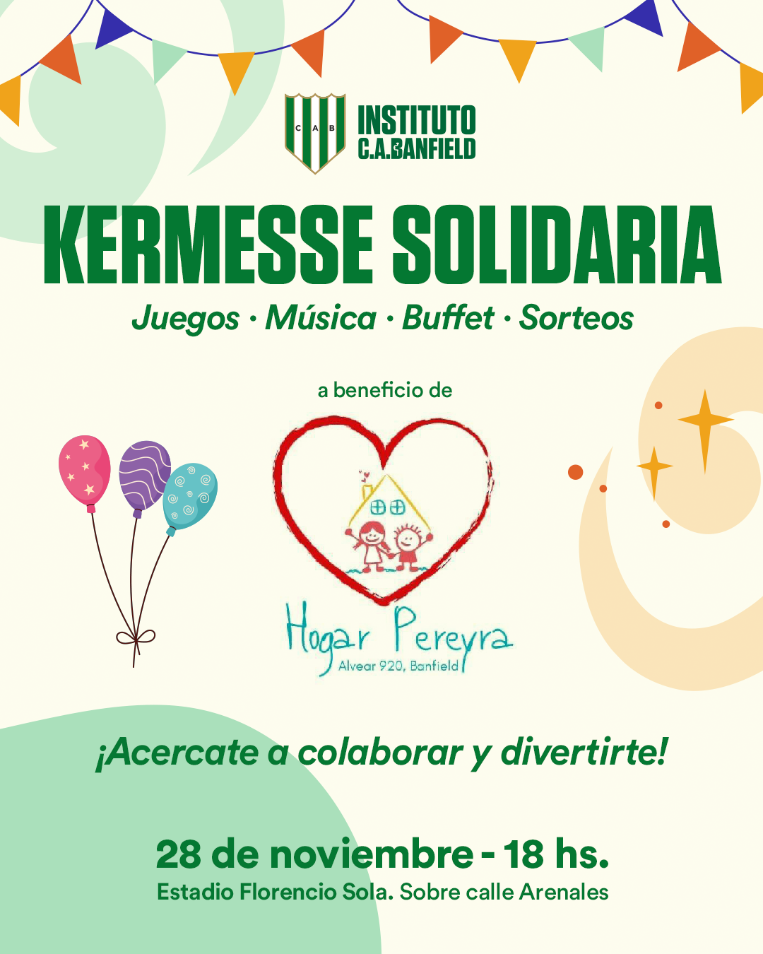 El viernes 28 de noviembre, de 18 a 21hs. en el Estadio Florencio Sola (Arenales 900), se realizará la Kermesse Solidaria del Colegio Banfield.