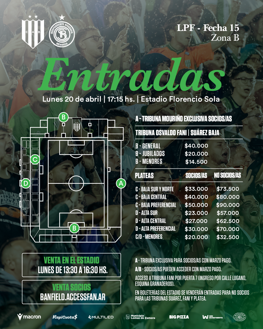 Por otra parte, los socios/as que quieran comprar plateas, pueden hacerlo online a través de banfield.accessfan.ar.
